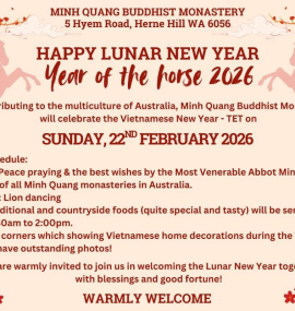 Perth ngày 17-1 -2026 GIÁO HỘI TĂNG GIÀ KHẤT SĨ ÚC CHÂU THIÊN VIỆN MINH QUANG TÂY ÚC 5 Hyem road, Herne Hill, WA 6056- Tel: (08) 92964259 THƯ MỜI ĐÓN XUÂN BÍNH NGỌ 2026…